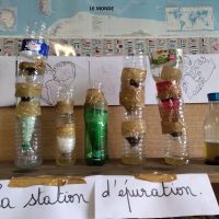 La classe de CM1 s’essaie à la fabrication d’une station d’épuration.